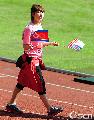 [OSEN=잠실,지형준기자] 27일 오전 서울 잠실 주경기장에서 열린 MBC 추석특집 '아이돌 스타 육상 선수권 대회'에서 에이핑크 정은지가 성조기와 인공기를 들고 입장하고 있다. /jpnews@osen.co.kr